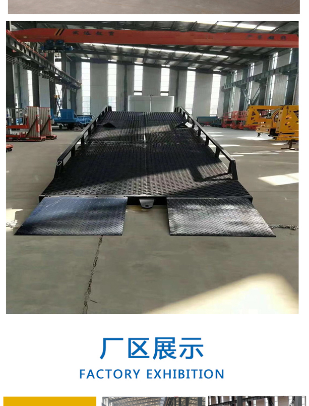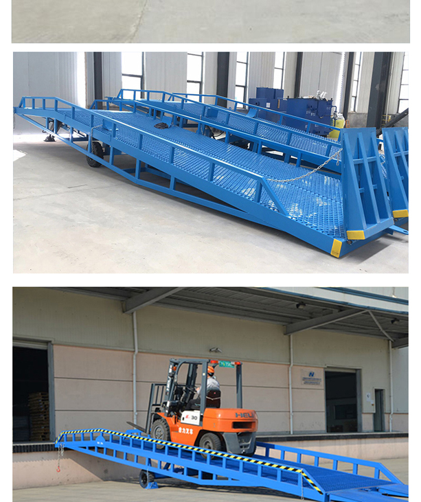 固定式登車橋廣泛應用于碼頭、站臺、倉庫等地。電動登車橋主要作用是貨臺與車輛之間搭起的一座橋。使叉車便利的行使達到裝卸貨的目的,該設備一端與貨臺一樣高,另一段搭在車廂后緣上,并能根據不同的車型及裝車過程中車廂的變化,自動調節高度。